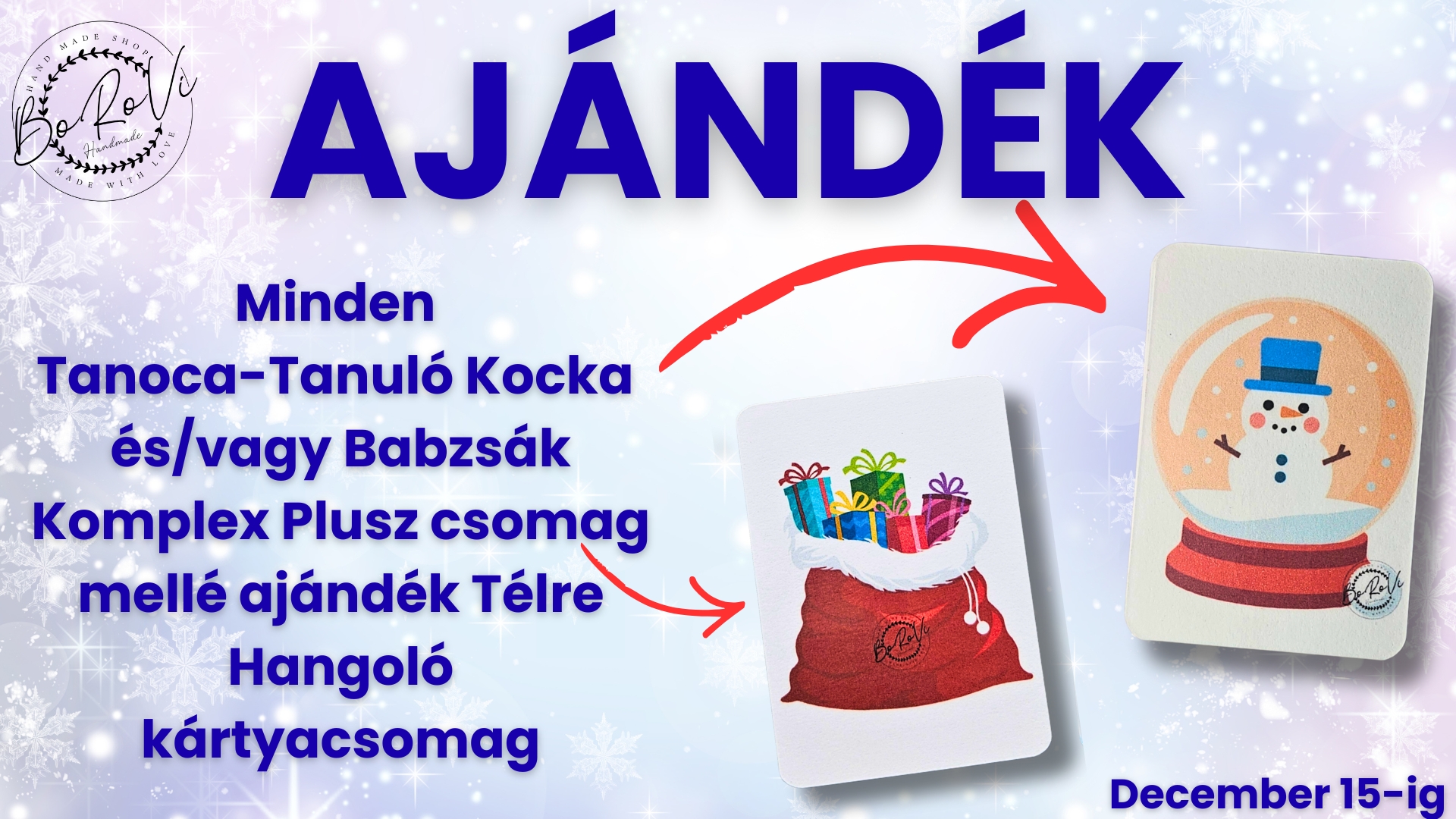 Üdvözlünk a BoRoVi Handmade világában! Nálunk a játék nemcsak szórakozás, hanem tanulás is. Fedezd fel mondókás kártyáinkat, ismeretterjesztő csomagjainkat, Babzsákos fejlesztőinket és a Tanoca-Tanuló Kockát – mind úgy tervezve, hogy a gyerekek játszva fejlődjenek, kreativitásukat és készségeiket is fejlesszék. Játssz, fedezz fel, tanulj velünk!